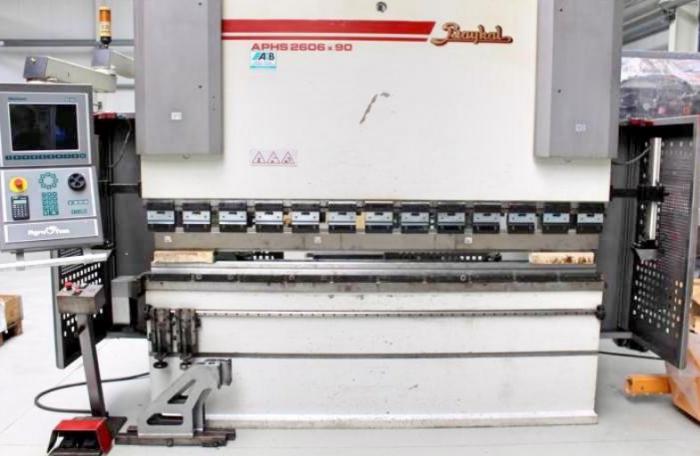 Stroj je v dobrém technickém stavu, po předchozí dohodě možnost odzkoušení. tlak 90,0 t délka zkosení 2600 mm vzdálenost mezi sloupy 2050 mm rameno sloupu 410 mm rychlost nastavení 100 mm/sec pracovní posuv 10,0 mm/sec rychlost návratu 100 mm/sec zpětný doraz - nastavitelný max. 750 mm zdvih 260 mm denní délka 460 mm výška stolu 860 mm objem oleje 130 ltr. celkový potřebný výkon 7,5 kW hmotnost stroje cca. 6250 kg. rozsah D-Š-V 3150 x 1750 x 2605 mm Výbava: elektro-hydraulický CNC ohraňovací lis s CNC řízením DELEM model DA 66W grafické 2D programování automatický výpočet pořadí ohybů a detekce kolizí kvalitní barevný LCD displej (TFT) otočné ovládání, vpředu vlevo řízené osy: Y1 + Y2 + X + R + CNC bombírování elektrický zadní doraz s kuličkovými šrouby 2x ručně nastavitelný dorazový prst motorické elektrické CNC bombírování systém upínání horního nástroje A (Amada) s horním klínovým bombírováním systém upínání spodního nástroje A (Amada) přední laserové ochranné zařízení LAZER Safe 2x přední posuvná opěrná ramena ("Sliding" systém) boční ochranné mříže volně pohyblivé nožní ovládání návod k obsluze ** Zahrnuté speciální příslušenství: UKB adaptér pro nástroje (13x kusů) UKB upínací desky pro nástroje (13x kusů) dělený horní nástroj ROLLERI 85?? dělená oboustranná matrice ROLLERI 4V 85?? Máme video stroje v chodu.