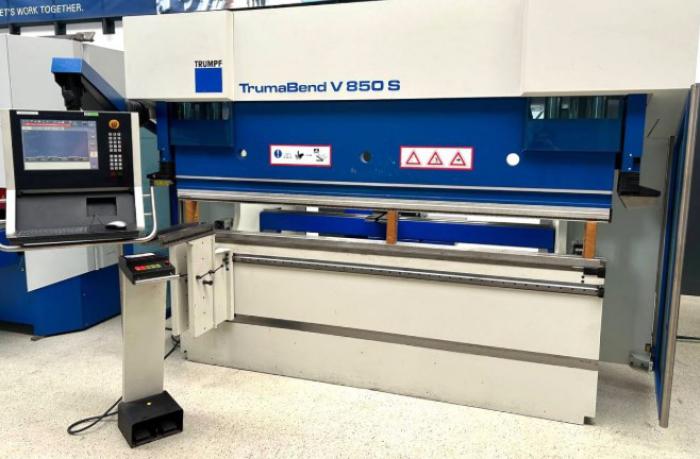 Stroj je v dobrém technickém stavu, po předchozí dohodě možnost odzkoušení. Lisovací síla 85 tun Délka skládání 2720 mm Zdvih 215 mm Max. Max. vzdálenost přítlačného nosníku stolu 505 mm Použitelná montážní výška 385 mm Sklon přítlačného nosníku ??10 mm Volná svislá vzdálenost 2260 mm Vysunutí 420 mm Šířka stolu 120 mm Pracovní výška 1050 mm Max. Rozsah dorazu v X 860 mm Zdvih v ose X 600 mm Zdvih osy R 250 mm Rychlý posun osy Y 220 mm/s Posuv Y 0,1-10 mm/s Zatahování Y 220 mm/s Pohonný motor 9,2 kW Olejová náplň (přibližně) 120 litrů Rozměry (D x H x V) 3620 x 1740 x 2835 mm Hmotnost (přibližně) 8200 kg Vybavení - Řízené korunování - Řídicí systém Trumpf TASC 6000 - Hydr. upínání nástrojů nahoře + dole - Pneumatické posunutí matrice - Řízené osy: Y1, Y2, X, R, Z1, Z2 - Bezpečnostní zařízení, zadní ochranný kryt válce - Bezpečnostní světelná závora