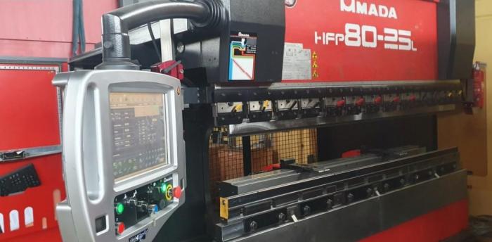 Stroj je v dobrém technickém stavu, po předchozí dohodě možnost odzkoušení. tlak 80 t délka zkosení 2550 mm vzdálenost mezi sloupy 2050 mm Zdvih nosníku 350 mm max. rozevření nosníku/stolu 620 mm C-výklenek 350 mm pojezdová vzdálenost X1+X2 programovatelná na cnc 700 mm Osy Z1+Z2 řízené cnc 0-2000 mm max. vzdálenost os R 200 mm Rychlá rychlost, inspeed 100 mm/sec rychlost ohýbání 0-10 mm/sec rychlost otevírání 100 mm/sec Počet pracovních hodin 24000 h Rozměry stroje: délka 2800 mm šířka 1800 mm výška 2550 mm hmotnost 5750 kg celkový potřebný výkon 9 kW rozměry stroje cca. 3x2x2,5 m