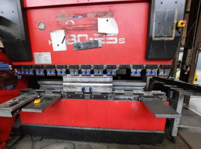 Stroj je v dobrém technickém stavu, po předchozí dohodě možnost odzkoušení. CNC řízení AMNC-PC Maximální ohybová síla 800 kN (80T) Min. ohybová síla 70 kN (7T) Pracovní délka 2570 mm Délka lisovaného nosníku 2570 mm Průchod mezi sloupky 2125 mm Vzdálenost 420 mm Sklon lisovaného nosníku 200 mm Minimální hodnota přírůstku 0,01 mm Pracovní rychlost 10 mm/s Šířka lisovaného nosníku 60 mm Výška pracovního stolu 960 mm Výkon 9 kW Napájení stroje 400 V Délka 3720 mm Šířka 2000 mm Výška 2550 mm Hmotnost 5750 kg