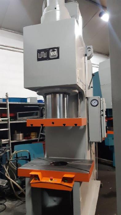 Hydraulický lis PYE 160 S1M s vyhazovačem. Maximální lisovací síla 160 tun. Pracovní tlak 16 MPa. Horní stůl 700x450 mm. Dolní stůl 900x630 mm. Světlá výška 800 mm. Zdvih válce 500 mm. Rychlost spouštění 200 mm/sec. Rychlost nahoru 125 mm/sec. Vyhazovací síla 63 tun. Zdvih vyhazovače 200 mm. Potřebný výkon 17 kW. Hmotnost 7000 kg. Výška 3450 mm, délka 2200 mm, šířka 1250 mm. Velmi dobrý technický stav. Stroj prošel generální opravou. Lis má pochromovaný píst. Bude také namontován nový těsnicí balíček. V lisu již byly vyměněny elektrické ventily za nové, všechny jsou nyní na 24V. Navíc bude instalována nová řídicí skříň s PLC ovladačem, přičemž jazyk ovládání lze nastavit dle výběru. Co se týče spodního stolu vyhazovače, v příloze naleznete fotografii, na které je vidět spodní stůl vyhazovače. V příloze jsou také náhledové fotografie finálního stroje, stejně jako snímek štítku a ventilů stroje, který bude dokončen během 2 měsíců. K dodání - za 2 měsíce od podpisu kupní smlouvy a složení zálohy