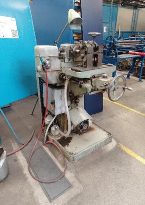 Stroj je v dobrém technickém stavu, po předchozí dohodě možnost odzkoušení. Hlavní rozměry a technická data Hmotnost kg cca 400 Šířka drážky pro Ø frézy mm 2-10 Délka drážky v jednom řezu mm "0 až 60 + Ø frézy" Počet hloubkových posuvů – 10 Rychlost posuvu mm 0,03 - 0,3 Počet posuvů (rychlostí) 8 Frézovací posuv (rychlosti) zdvihů/min "5,1 / 7,3 / 10,2 / 13,9 / 18,4 / 25,4 / 34,7 / 49,5" Počet rychlostí ot. vřetena 4 Otáčky vřetena ot/min "970 / 1370 / 1950 / 2750" Rozměry stolu (pevný stůl) mm 160 x 355 Nastavení výšky stolu mm 40 Příčný pohyb stolu (proti fréze) mm 110 Napájení Volt / Hz 380 / 50 Výkon motoru vřetena kW 0,8 Otáčky motoru vřetena ot/min 920 Přibližná plocha potřebná pro stroj mm (š x d x v) 670 x 1100 x 1200